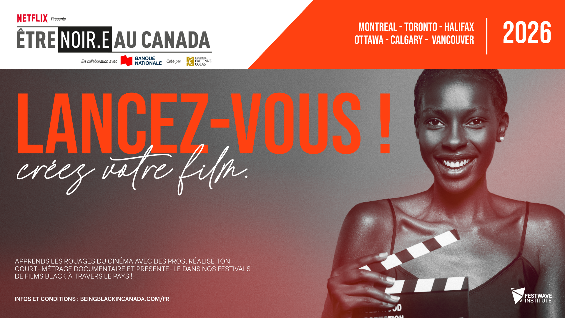 Le programme Être Noir.e au Canada de la Fondation Fabienne Colas – le plus grand incubateur dédié aux cinéastes noir.e.s au Canada – est heureux de lancer un appel de candidatures pour son édition 2026. Grâce au soutien de NETFLIX, la Banque Nationale, Téléfilm Canada, le Conseil des Arts du Canada et de ses partenaires locaux, le programme accueillera jusqu’à 21 cinéastes noirs émergents à Montréal, Toronto, Halifax, Ottawa, Calgary et Vancouver.